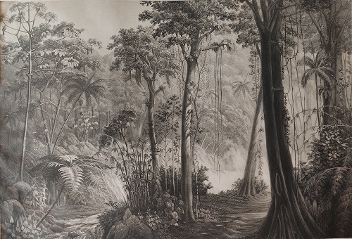 impressas em livros ou litogravuras, a natureza exuberante de cores que aqui